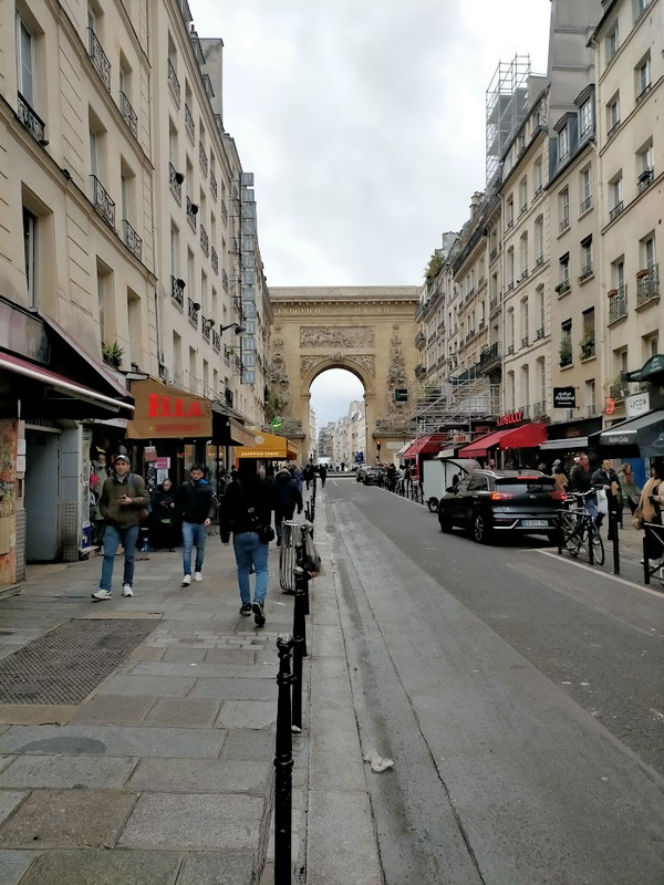 Et en sortant, que c'est beau et insolite de voir la Porte Saint Martin au bout de la rue.