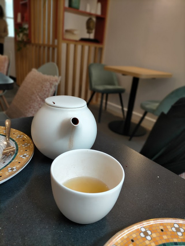 Les cuisines sont en bas, mais le salon se trouve à l’étage. Je suis donc montée, j’ai commandé un thé et quelques gâteaux. Pendant quelques instants, le temps semblait suspendu. Je savourais… et en même temps je regardais par la fenêtre : le passage, presque vide, comme figé lui aussi.