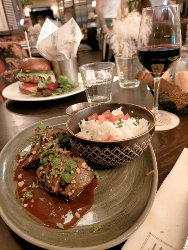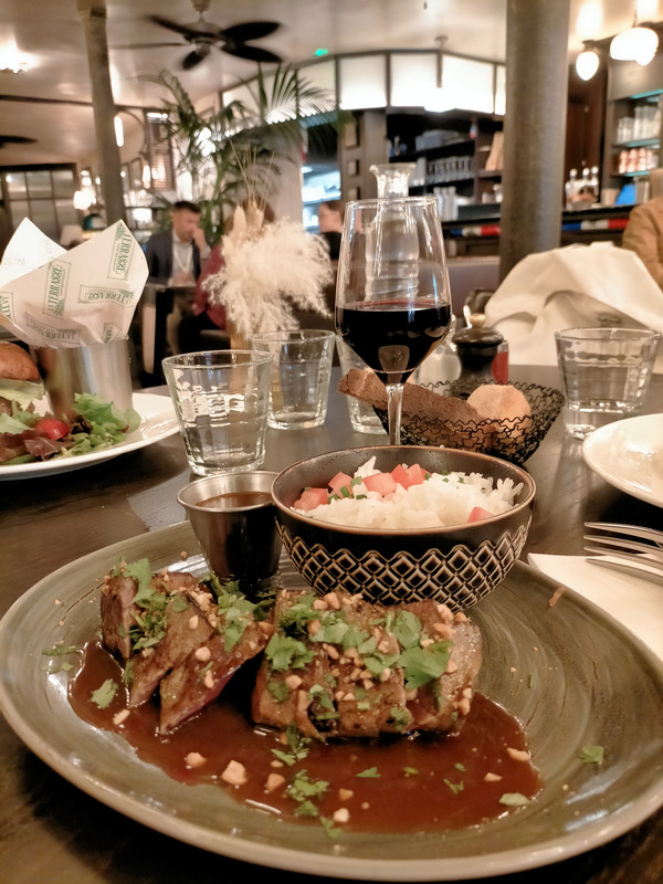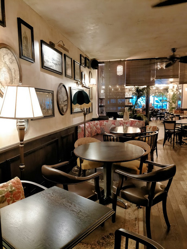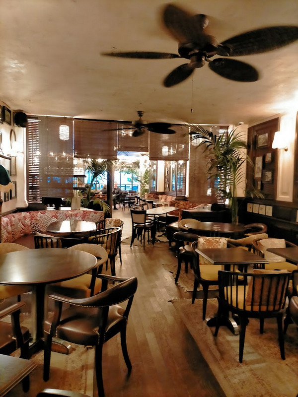 LA TERRASSE a été repris en 2023. C'est tout neuf, mais la décoration s'est inspirée des anciennes colonies, avec des ventilos au plafond, des vieux objets, des banquettes avec motifs, des tapisseries. Beaucoup de style, c'est très réussi.