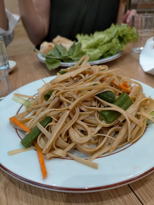C'est un restaurant chinois classique, pas très grand, service rapide. Je vais souvent manger la bas. Je goûte un peu tout. Mais je craque pour les NOUILLES DE TOFU. C'est le plat qu'on voir en photo. C'est servi froid, un peu vinaigré. J'ADORE.