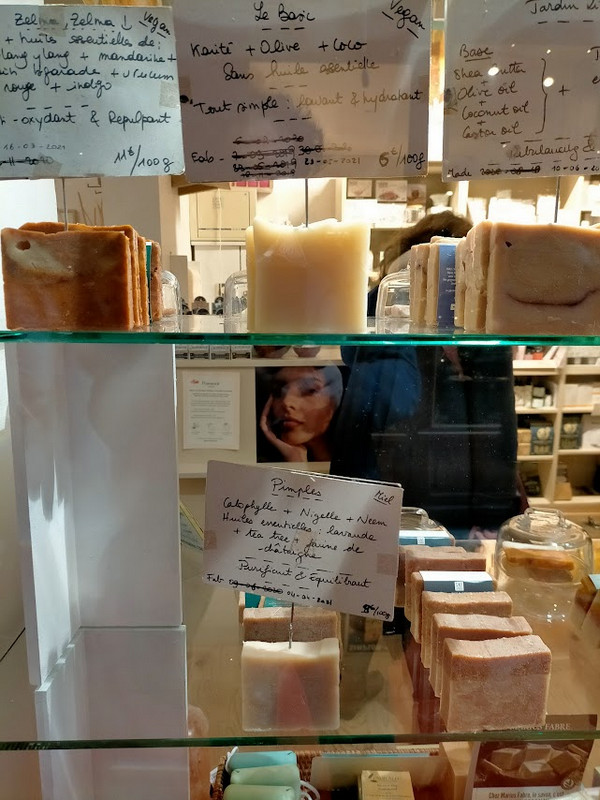 "De Marseille ou d'Ailleurs", est spécialisée dans la création artisanale de savons. Ceux exposés dehors sont rigolos, avec des formes et des couleurs bizarres.