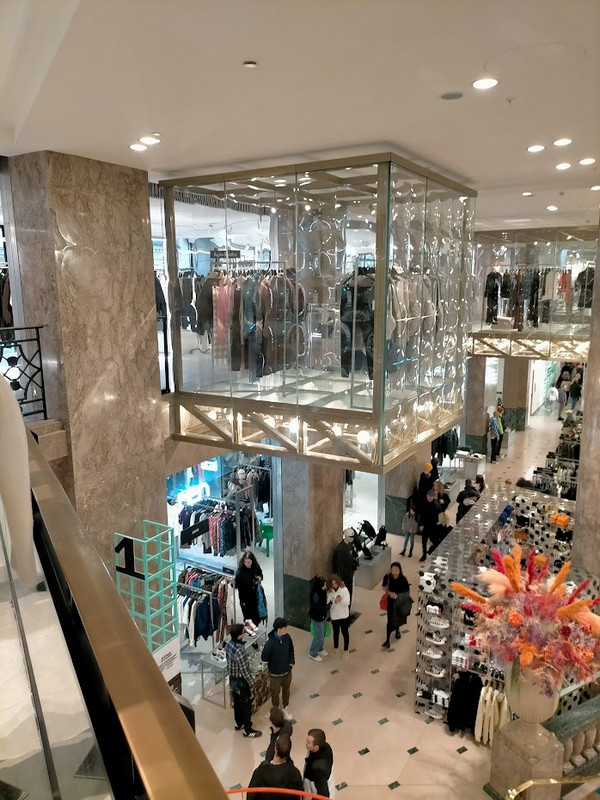 Je suis allé aux Galeries Lafayette des Champs Elysées. Un ensemble de boutiques de luxe. C'est très beau pour les yeux. Il y a des produits très rigolos à regarder, des chaussures avec des talons de 15 cm, des Tongue(s) avec de la fourrure, des lunettes avec des formes improbables, etc.