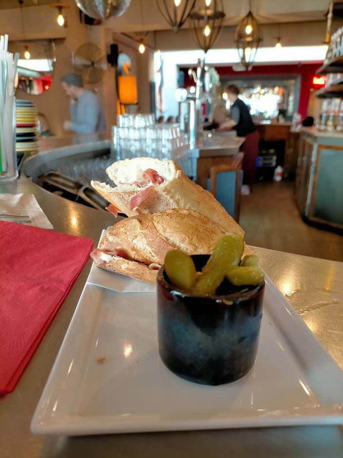 Il y a tout dans le titre. Une bonne adresse de café français. Un jambon beurre avant d'aller au théâtre.