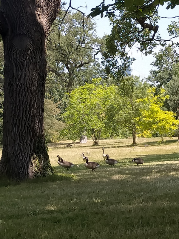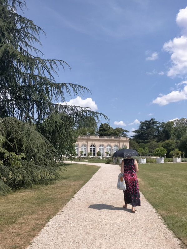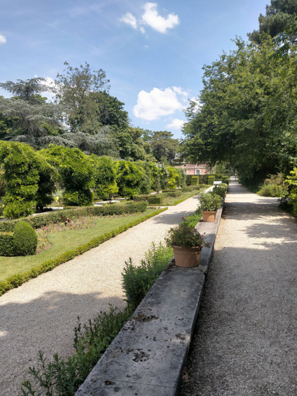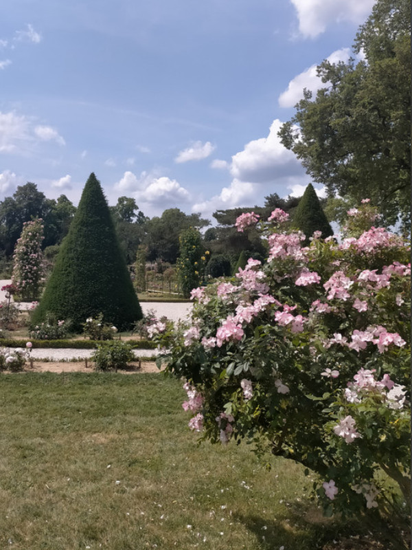 Il faisait chaud. Un peu marre du bruit. Nous cherchions une pause, le temps d'un livre, d'un journal. Mais où ? Les parcs à Paris sont beaux, mais bondés. Alors nous avons pris le bus. 43. Arrêt Bagatelle. (Il va jusqu'à la gare du nord !). Un petit sac de sandwichs et de boissons. Et nous sommes allés directement dans notre coin secret, qui ne le sera plus à présent, un banc entouré de buissons, avec en face de lignes buissons.